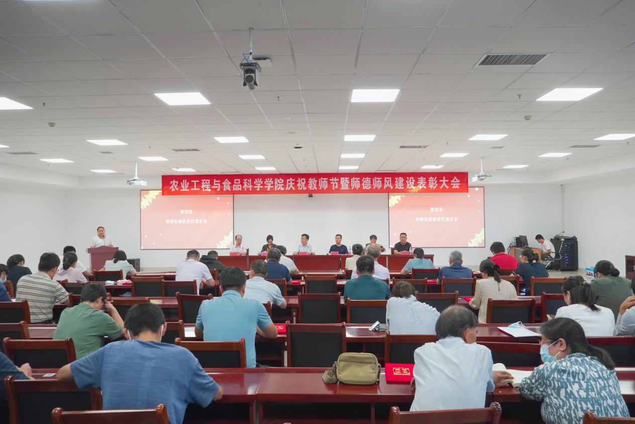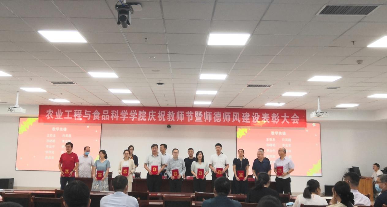 春风化雨,润物无声育桃李。为弘扬尊师重教的优良传统,以优异的师德师风建设水平迎接党的二十大胜利召开,9月8日,在第38个教师节来临之际,学院于6号实验楼1104室举行庆祝教师节暨师德师风建设表彰大会,向全体教师致以节日的祝贺与敬意。学院领导班子成员、全体教职工参会。