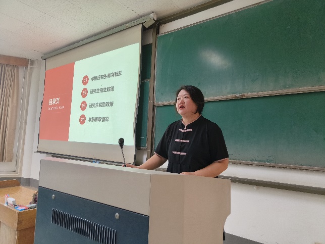 农工学院院长助理李富军、研究生工作办公室主任郑彬,围绕2023年研究生招生政策、校内优秀生源培养办法及直博生选拔规则进行制度解读,详细介绍了学院研究生教育概况、学科建设、师资力量、人才培养等,为学生们解读考研形势、分析报考策略,分析近三年来招生人数、录取情况及趋势,并集中回答学生现阶段备考出现的相关问题及疑问。最后,郑老师鼓励我院本科生提前做好考研规划,明确考研目标,以积极的心态备战研究生考试。
