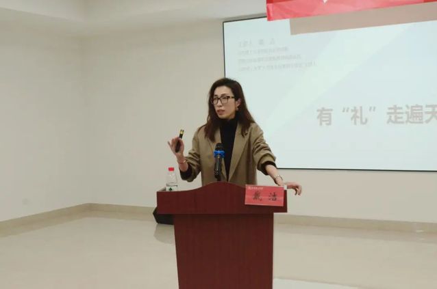 戴洁从在校同学们的实际生活出发,以共享单车乱停乱放以及个别学生宿舍脏乱差现象引出校园文明礼仪问题。随后,戴书记以理论性与互动性相结合的形式就礼仪概说、仪态仪表、言谈礼仪和社交礼仪四个部分讲授,详细讲解了作为学生干部应掌握的标准礼仪规范。戴书记表示,作为新时代学生干部,希望大家在校园学习生活中做到“知礼、懂礼、习礼、用礼”,打造知礼守礼、文明和谐的学生干部队伍。