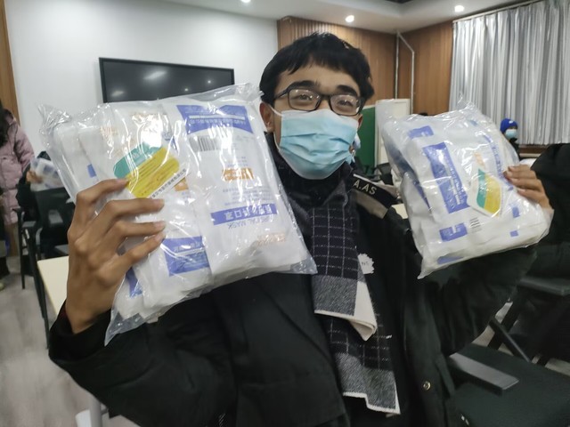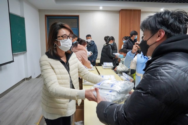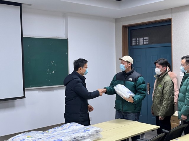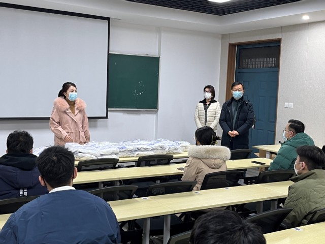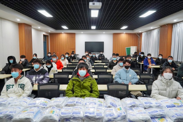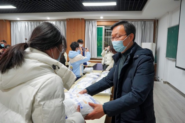 口罩发放现场,各班级负责人排队领取,秩序井然。杨直询问学生在校的困难和诉求,叮嘱大家做好防护,将学院的关心关怀传达给在校的每一名学生。收到口罩后,学生们纷纷表示,大家收到的不仅是口罩,更是一份“安全感”,一份来自学院的关爱和捐赠方的关怀,他们将心怀感恩,严格遵守学校疫情防控各项规定,为防控疫情、守护健康贡献自己的力量。