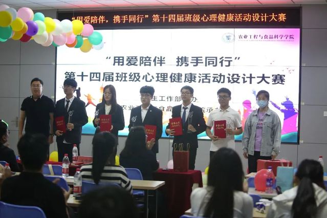 5月23日晚上,我校“用爱陪伴,携手同行”第十四届班级心理健康活动设计大赛决赛在大学生就业市场精彩落幕。本次大赛由学生工作部学生心理健康教育与咨询中心主办,农业工程与食品科学学院承办。“觉·成长”心理团辅工作室成员李超、物理与光电工程学院心理辅导员张起、化学化工学院心理辅导员王婷婷等五位老师担任本次决赛评委,经过前期初赛入选的十支队伍参加了决赛。