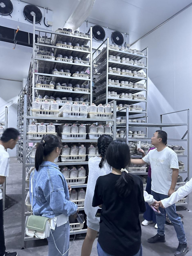 两家企业对我院师生的到访表示欢迎。在山珍园食品科技股份有限公司,工作人员向学生展示企业主营业务即占据韩国80%以上市场份额的桔梗产品,表示企业在科技助力下食品行业将有发展的巨大潜力。在山东蓝泰农业开发有限公司,师生在工作人员带领下参观了解企业全套先进食用菌研发设备和生产车间。