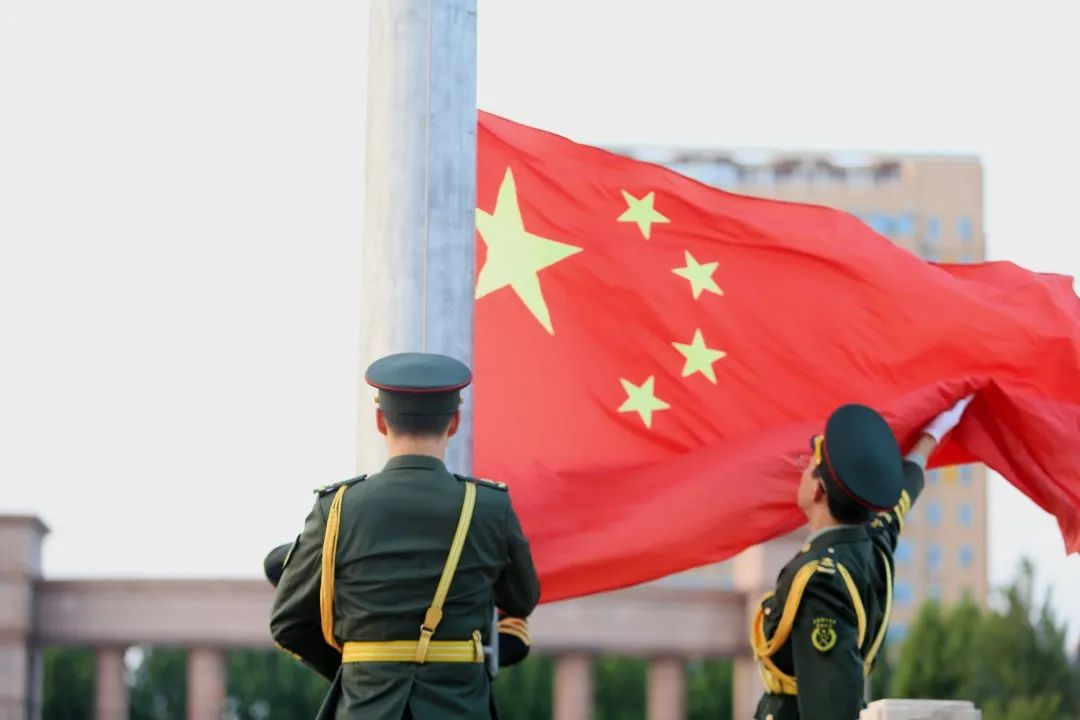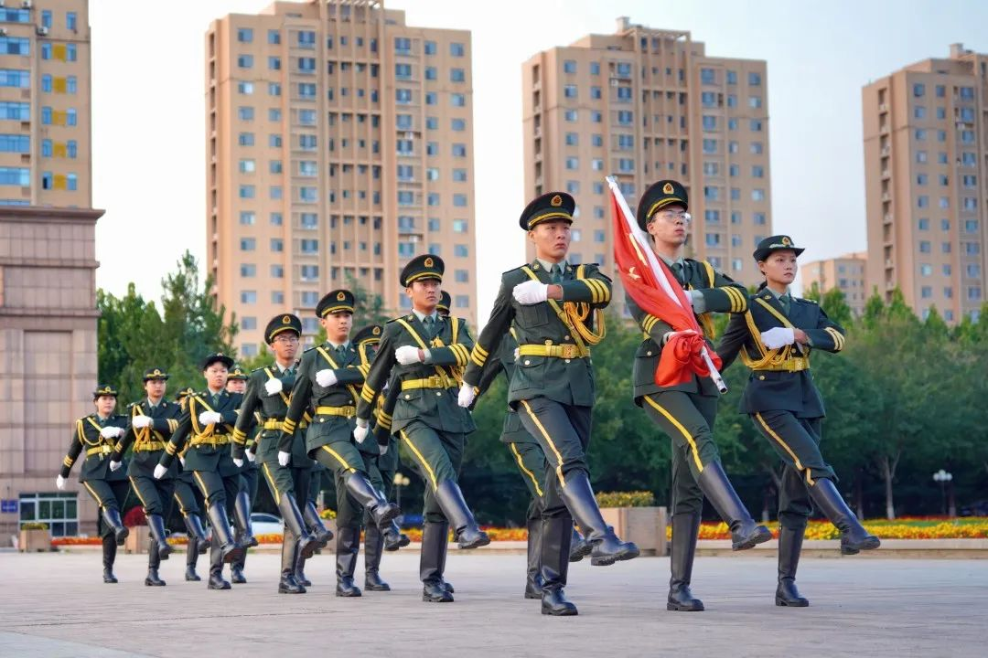 以青春之名,护国旗之威。国旗护卫队迈着整齐的步伐,目光坚定、步履铿锵。伴随着慷慨激昂的《义勇军进行曲》,五星红旗冉冉升起,在熠熠晨光中迎风飘扬。全体师生肃然而立,行注目礼。