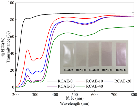 图3 添加不同浓度RCAE包装膜的光阻隔性分析