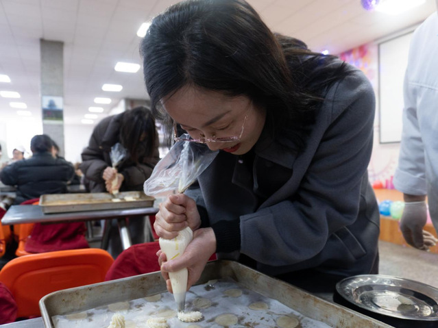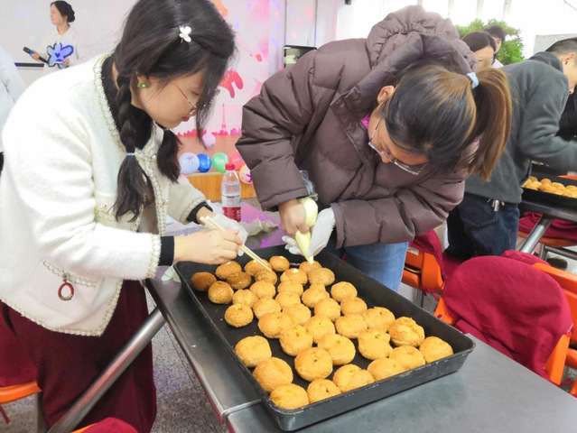 现场香气四溢,充满了温馨的氛围。参与活动的女教职工与学生们专注地聆听完范师傅讲解的步骤及技巧后,大家情绪高涨,纷纷拿起工具制作泡芙与曲奇,她们全神贯注地握着裱花袋,轻轻一挤,一个个精致小巧的泡芙与曲奇饼干雏形便出现在烤盘上,经统一烘烤过后,一款款造型各异的专属糕点新鲜出炉,大家迫不及待地围上前来欣赏,一时间欢声笑语弥漫在整个现场。![]()