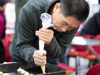 活动邀请了饮食服务中心甜品授课厨师范长征为大家讲解泡芙和曲奇饼干的制作方法,从操作方法和造型设计等方面,向大家一一进行教学示范。![]()