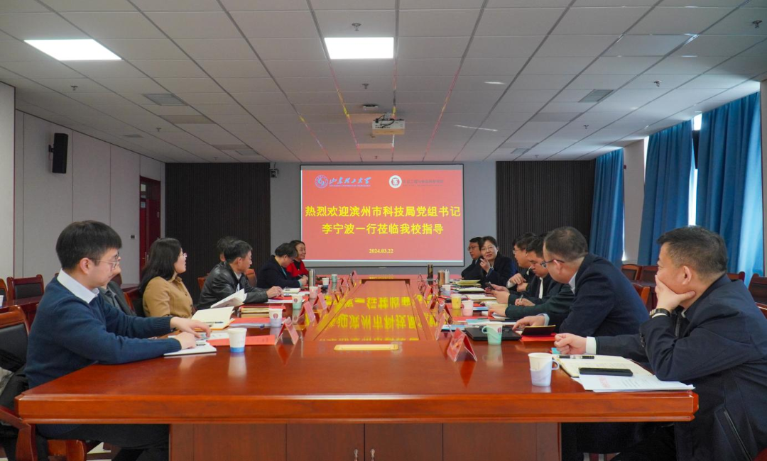 3月22日上午,滨州市科技局党组书记李宁波一行8人来校,就平台共建、人才引育、科技成果转化等进行座谈交流。学院党委书记徐启达、执行院长李志合、党委副书记姜素锦、副院长孙霞及学院相关教师代表与客人在6号实验楼1109会议室进行座谈交流,座谈会由徐启达主持。