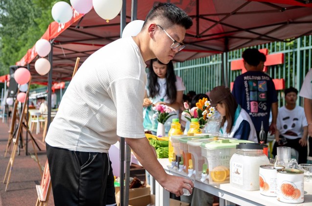 美食能够激发人的味觉感受,给人带来愉悦的体验,适当的美食摄入可以帮助身体恢复活力,还可以通过满足人的生理需求、情感寄托、社交互动来实现对身体和心灵的双重疗愈。志愿者巧手制作的饼干、小吃等,不仅体现学院特色,更是温情与关怀的象征。