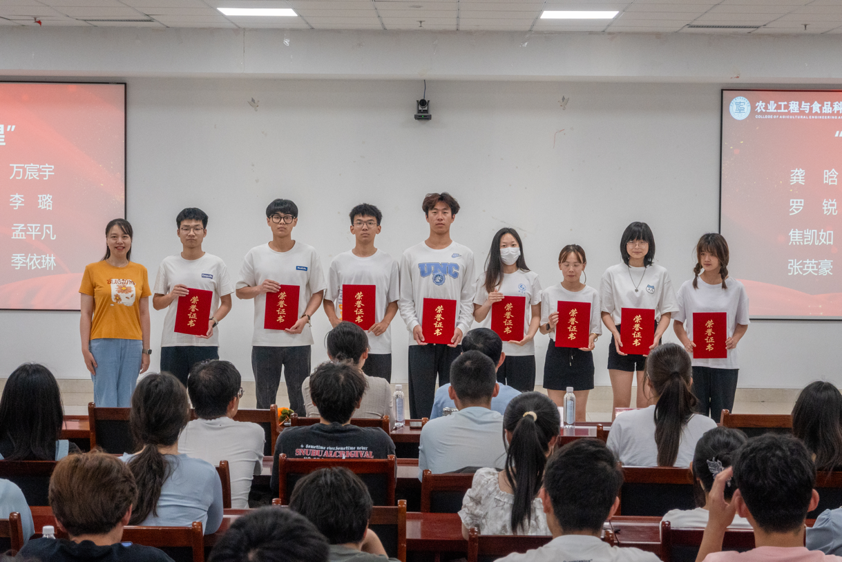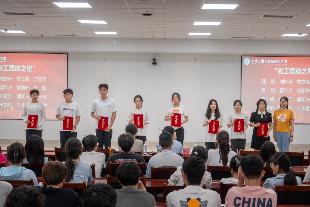 姜素锦宣读表彰决定。本次表彰共设置了三个奖项,分别是农工活力之星、农工飞跃之星及农工舞动之星,用以表彰在阳光体育运动、“活力农工”体育文化节、春季运动会等体育运动中积极参与、刻苦训练、奋勇拼搏的学生。到场嘉宾为获奖学生颁奖,并合影留念。