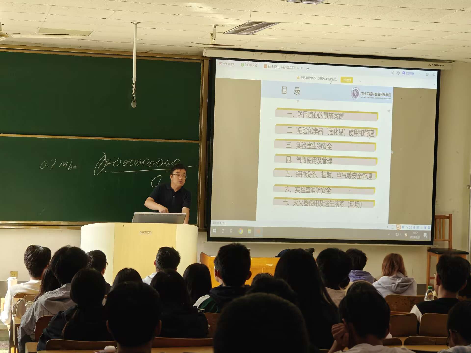 本次培训会由农业工程与食品科学学院能源系实验室主任李永军,农业机械系实验室主任牛国栋以及食品系实验室主任盛桂华主讲,全院600余名2024级本科生及研究生新生参加了本次培训。
