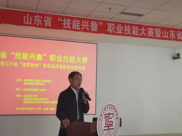 由山东省轻工纺织烟草工会委员会和山东省轻工业联合会主办,山东省乳制品工业协会承办的山东省“技能兴鲁”职业技能大赛——山东省轻工行业“视界牧业”杯乳品评鉴职业技能竞赛(以下简称: 技能竞赛)于2024年10月25日至27日在我校举行,来自山东省的18家乳品企业的选手和高校学生共计130多人参加比赛。