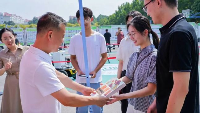 学院精心设计“你好,新同学”背景墙,将专业特色元素融入其中,特色地标融入思政元素。装饰的花车将农业机械等专业元素生动呈现,吸引学生及家长纷纷打卡,在欢笑中激发专业学习的浓厚兴趣。新生寄语互动专区以”我想成为XX的农工人“为主题,新生们用笔尖书写青春梦想。”我想成为勇敢追梦的人“,”我想成为坚韧不拔的人“等真挚话语,展现了新生们对大学生活的美好期待和使命担当。