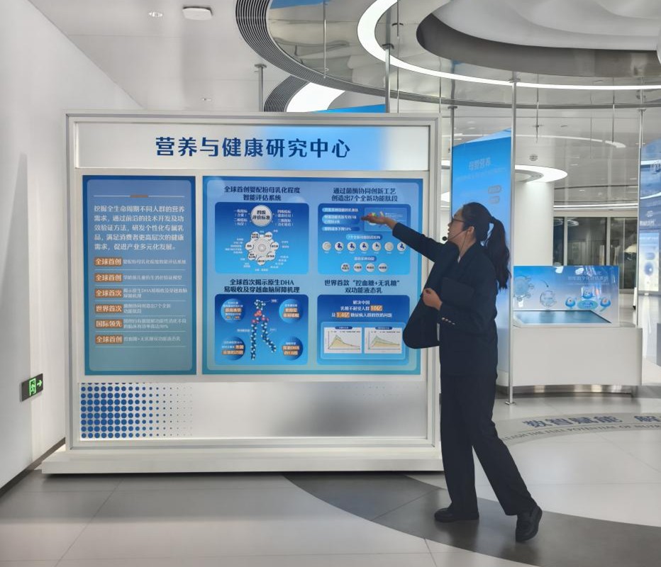 在营养与健康研究中心,工作人员展示针对不同人群营养需求的个性化乳品研发成果,直观呈现了“以消费者需求为导向”的创新理念。在奶牛繁育与养殖技术研究区,中心主导创建的“世界首个蒙古高原家畜种质资源库”以及自主研发的牧草品种,彰显了我国在乳业上游核心资源领域的自主创新实力,也更新了参观团对传统乳业“重加工、轻种养”的固有认知。