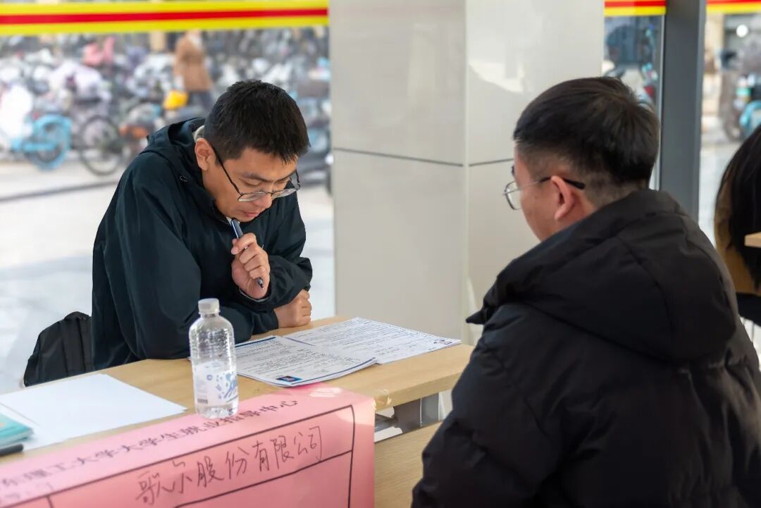 招聘会现场气氛热烈,潍柴雷沃智慧农业科技股份有限公司、山东五征集团有限公司、潍坊伊利乳业有限责任公司等近20家企业为学生提供185个工作岗位。2026届毕业生与用人单位招聘代表进行互动交流,了解用人单位的基本情况、招聘需求、薪资待遇、发展空间等,并积极投递简历。招聘会后,6家企业在12号教学楼组织开展宣讲、面试,并与部分毕业生现场达成初步签约意向。