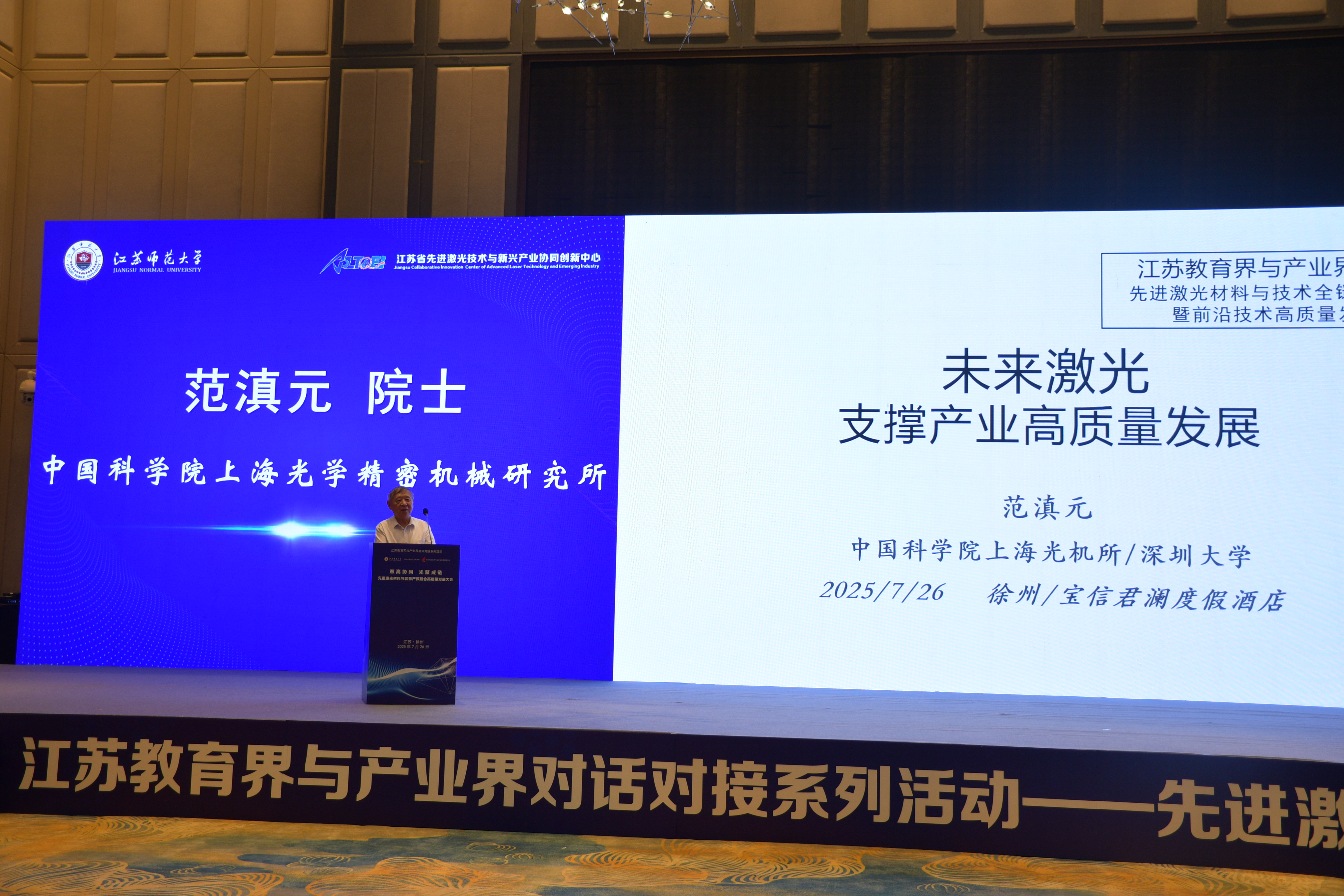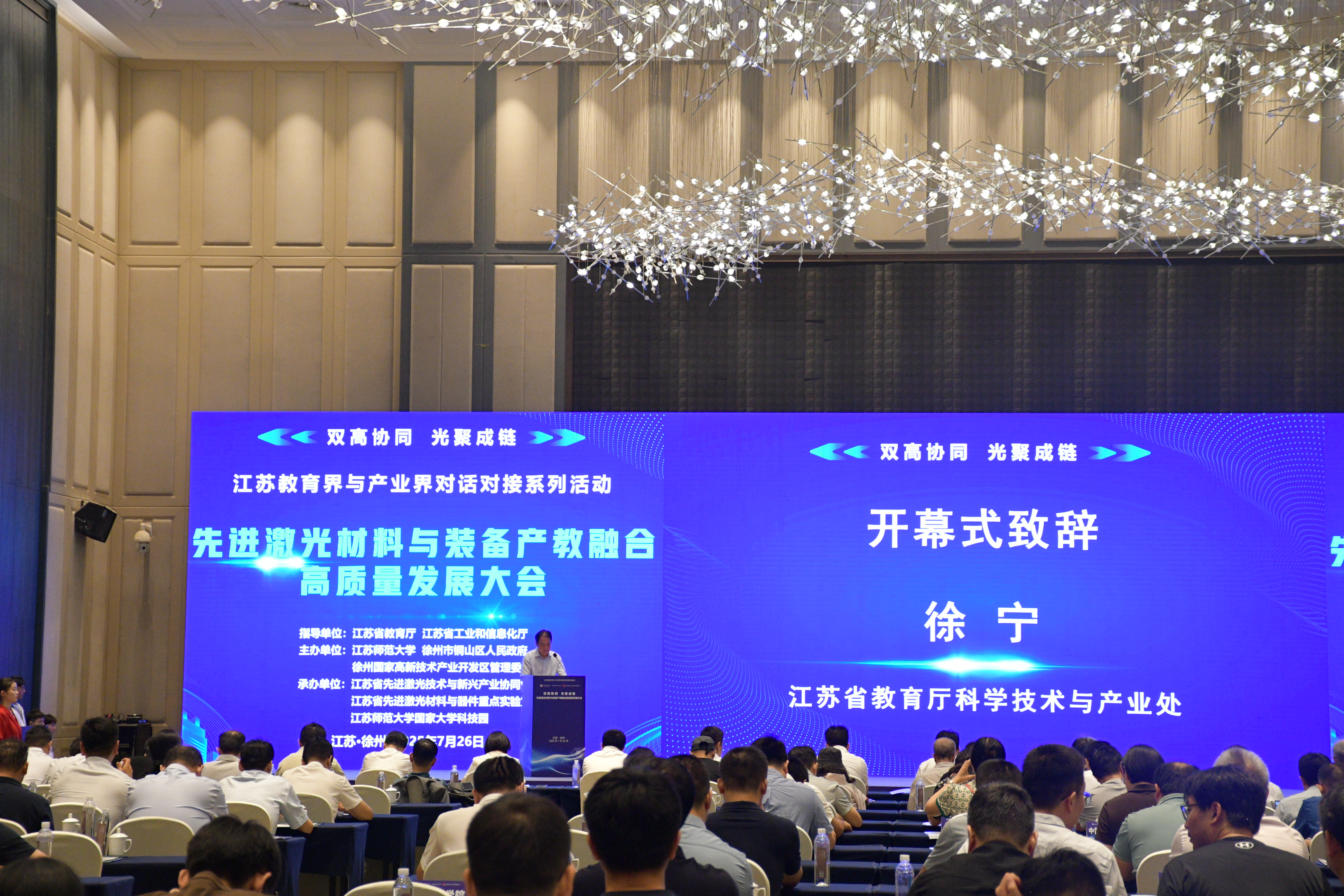 7月26日,江苏教育界与产业界对话对接活动——“双高协同 光聚成链”先进激光材料与装备产教融合高质量发展大会在我校隆重举行。本次大会由江苏省教育厅指导,江苏师范大学、徐州市铜山区人民政府、徐州高新技术产业开发区管理委员会主办,江苏省先进激光技术与新兴产业协同创新中心、江苏省先进激光材料与器件重点实验室、江苏师范大学国家大学科技园共同承办。