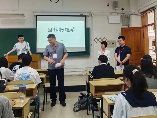 检查组重点巡查了教师到岗、课堂教学组织、学生出勤、教学设备运行等情况。学院领导与师生亲切交谈,提醒学生严守课堂纪律、端正学习态度,并强调了相关课程对考研深造和未来发展的重要意义。随后,班子成员随机进入《固体物理学》、《电动力学》、《高频电子线路》等课程课堂,与学生们共同听课。从检查情况看,授课教师精神饱满,备课充分、讲解条理清晰,板书设计合理,课堂秩序良好,各项教学工作平稳有序。