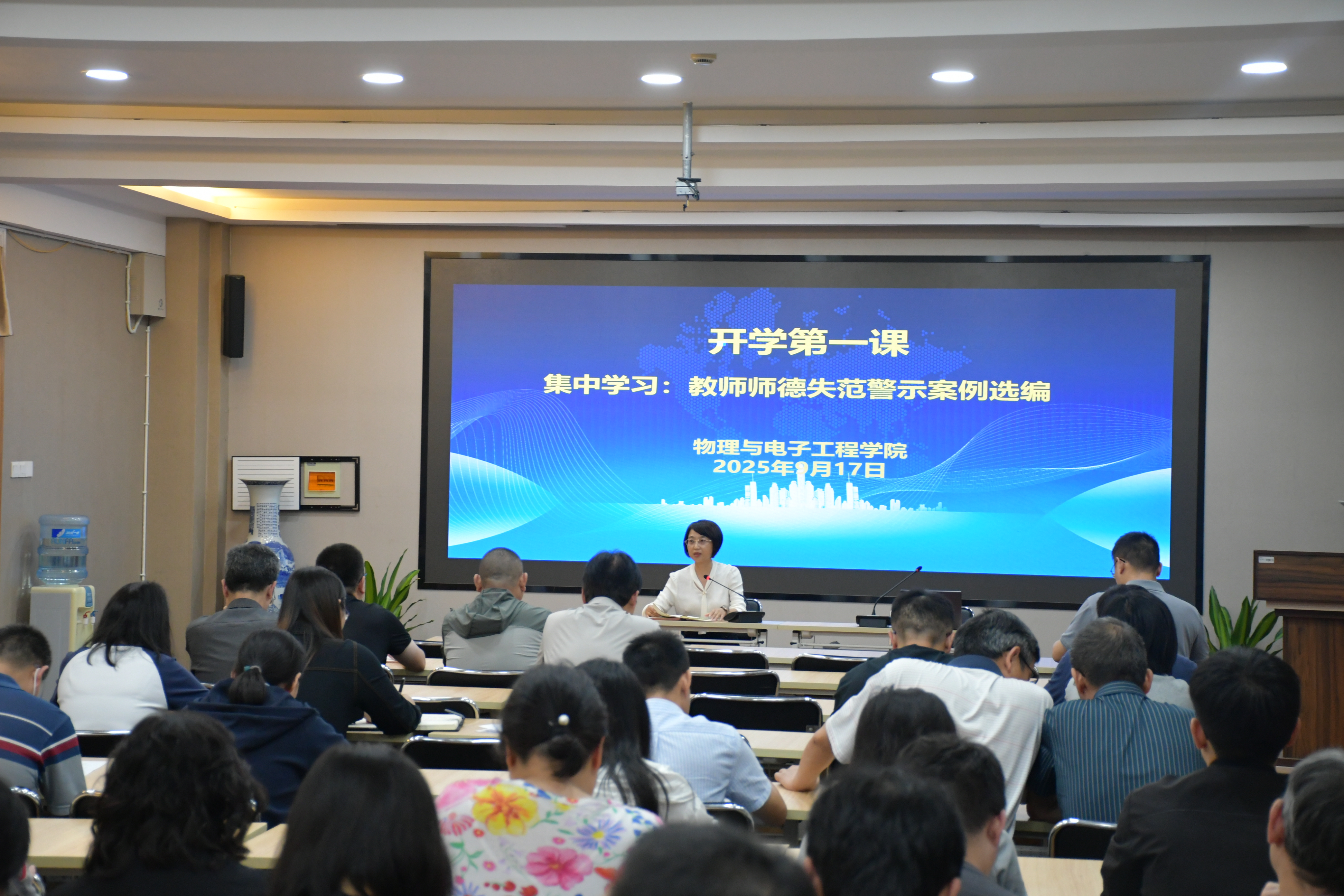 9月17日下午,物电学院召开全体教职工大会暨“开学第一课”师德师风专题教育会议。学院全体教职工参加会议。会议由学院党委书记何莉娜主持。