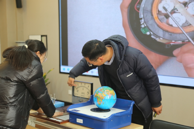 活动伊始,实验教学中心主任、高级实验师王道光老师对远道而来的师生表示热烈欢迎,并简要介绍了学院的基本情况及本次研学的安排。王道光老师与学科教学(物理)专业研究生谢洪艳共同为同学们带来了一场生动有趣的物理科普讲座。通过电吹风侧吹乒乓球、悬浮地球仪、人体发电、锥体上滚、饮水鸟、范式起电机、静电球等多个贴近生活的物理实验,逐步引导学生观察现象、思考原理。讲座过程中还穿插视频讲解与互动体验环节,邀请学生上台参与实验操作,极大地激发了大家对物理世界的好奇与探索热情。