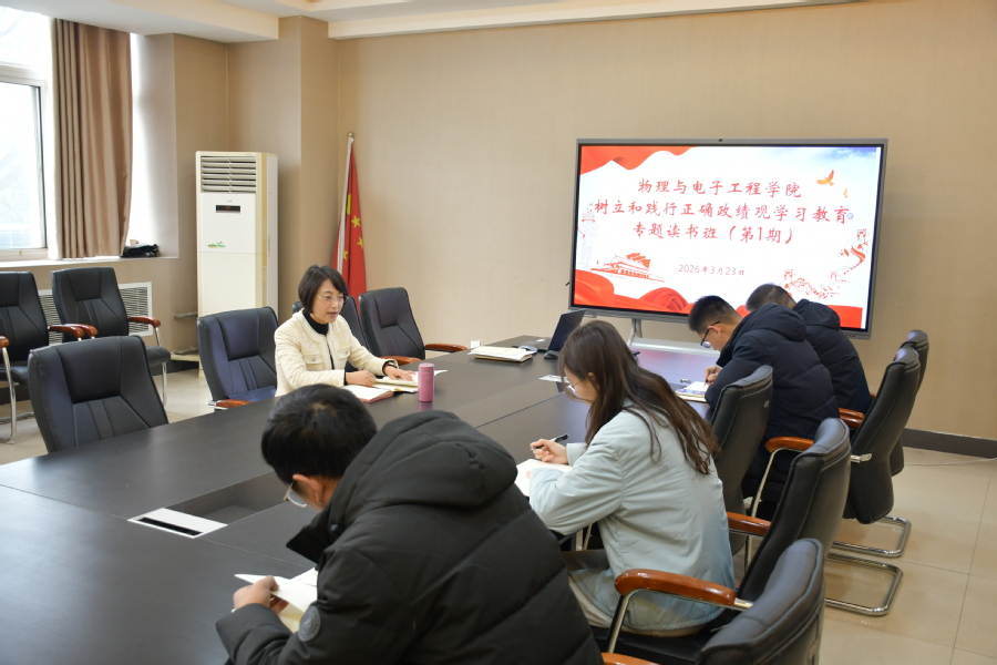 3月23日上午,物理与电子工程学院党委召开树立和践行正确政绩观专题读书班(第一期)暨党委理论学习中心组学习会议。学院党委理论学习中心成员参加学习。会议由院党委书记何莉娜主持。