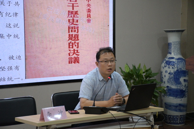 在专题读书班上,学院党委副书记李冲以《坚定拥护“两个确立” 坚决做到“两个维护”为学院高质量发展提供坚强政治保证——<习近平著作选读>第一卷、第二卷学习体会》为题展开主讲,领学了《习近平著作选读》第一卷、第二卷的部分内容并分享了学习体会。