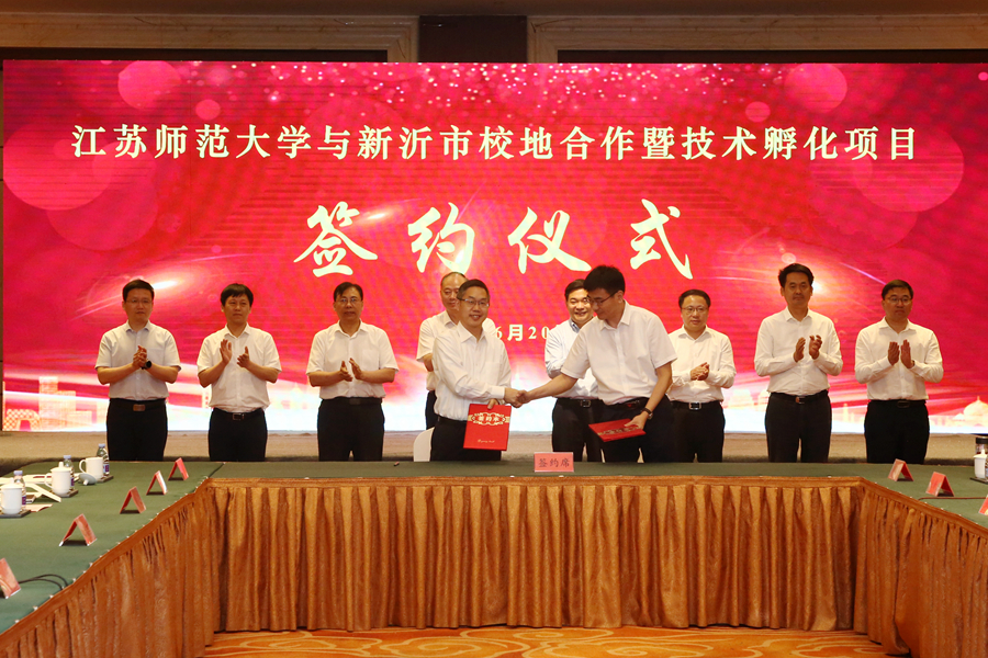 陈堂清在致辞中表示,新沂是江苏的北大门,苏北重要的交通枢纽、新兴的工业和商贸旅游城市,是徐连经济带战略支点、淮海经济区重要开放门户和徐州城市副中心,历史文化底蕴丰厚,交通区位优势明显,产业基础雄厚。近年来,新沂深入贯彻习近平总书记视察江苏、视察徐州重要讲话指示精神,以新发展理念为引领,聚焦高质量发展主线,全面推进中国式现代化新沂新实践。新沂始终坚持“工业立市、产业强市”战略不动摇,一手抓传统产业转型升级,一手抓战略性新兴产业做大做强,一批投资百亿级“链主”企业相继签约落地、开工投产,形成了集群态势,开辟了产业发展新境界。陈堂清指出,新沂热切期待与江苏师范大学深化联系,全面加强在产业发展、科技创新、平台建设、人才培育等方面的合作,推动更多科技成果在新沂转化,增强新沂发展核心竞争力。