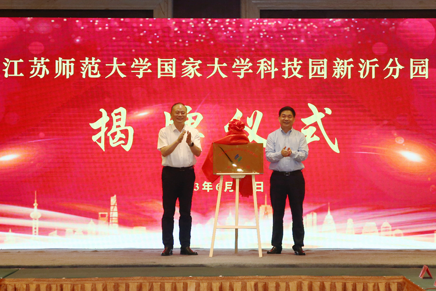 仪式上,方忠和陈堂清共同为江苏师范大学国家大学科技园新沂分园揭牌。国家大学科技园新沂分园共建项目、诚洲环保超细复合材料应用于再生资源的制备技术项目、华信光致变色膜研发项目及汉德森蓄光亚克力产业化项目举行签约仪式。