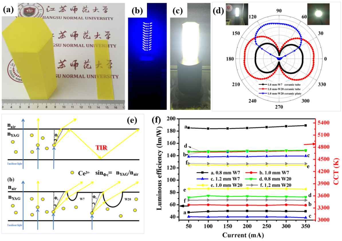 国家《“十四五”规划和2035远景目标》明确将“高效照明产品”作为发展绿色经济的重要组成部分。在半导体照明“十三五”规划中,更是将研制“超高能效、高品质、全光谱半导体照明核心材料”作为“首要急需攻克的重大共性关键技术”。目前传统荧光粉的有机涂覆层在高功率下极易色度漂移、光衰甚至高温碳化而失效;在新型转换材料中,荧光陶瓷以其高效率、高热导、结构设计灵活等突出优势,成为最具潜力的技术方案之一。本论文系统综述了先进稀土光电功能材料团队基于“能带工程”、“缺陷工程”和“结构工程”学术思想,开展的发光中心配位环境调控、微观/宏观缺陷协同优化和精密成型融合光学设计等创新策略实现全光谱、高光效和高热稳定性荧光陶瓷设计、制备以及应用方面的研究进展。特别是针对目前激光照明器件尚无检测标准和评估方法的瓶颈难题,明确了相关概念,提出了涉及光学性能、热学性能和可靠性等的有效测量方法。本论文的发表旨在发展新型稀土激光荧光材料,加强稀土新材料前沿技术基础、工程化与应用技术创新,促进我国激光照明产业的创新发展。