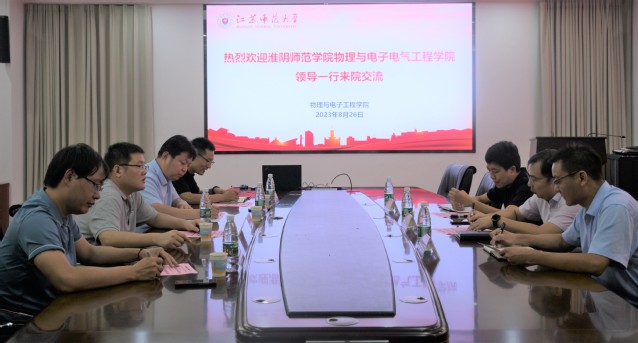 8月26日上午,淮阴师范学院物理与电子电气工程学院院长李清波、副院长马鹏程、博士王欣到我院调研交流。我院院长李印威、副院长魏明生、副院长张乐、实验中心主任王道光陪同调研。