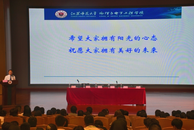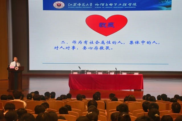 专题讲座上,李书记分享了学院2023级全体本科新生人数、专业、籍贯、民族等情况,详细介绍了物电学院的学科发展、科研平台、师资队伍、人才培养、科研竞赛成果、近年获奖情况等诸多信息。同时,李书记以安心、敬畏心、上进心、恒心、宽容心、责任心“六心”为切入点,嘱咐新生努力学习、敬重师长、遵纪守法、砥砺奋进、坚持不懈、积微成著,培养良好的人际关系,养成健康的作息习惯,勇于担当、乐于奉献,最后李书记祝愿大家能够在物电学院创造璀璨的未来。