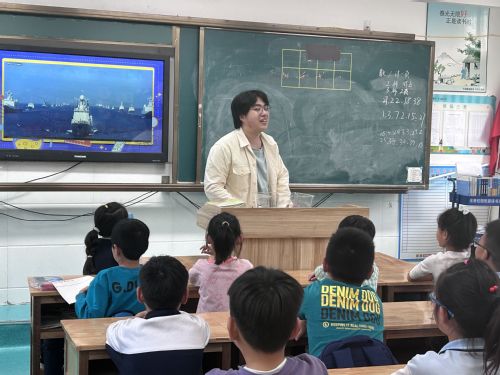 为进一步提高教育硕士的培养质量,增强教育硕士的教学技能,持续推进教育硕士研究生培养模式改革。10月8日,我院四名教育硕士走进徐州市矿山路小学,开展“科普教育”社会实践活动,本次活动不仅让小学生们了解了我国海军的相关内容,同时还丰富了小学生们的课后延时服务内容。