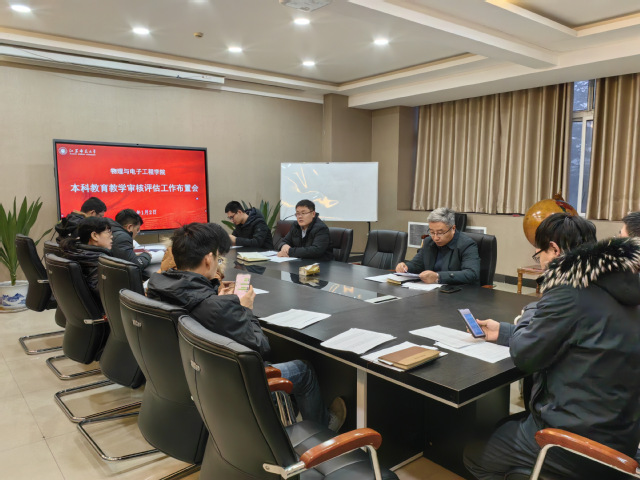 2024年1月3日下午,物电学院召开本科教育教学审核评估工作推进会,学院党政领导班子、各系主任、支部书记、部分骨干教师、教务办全体成员参加会议。