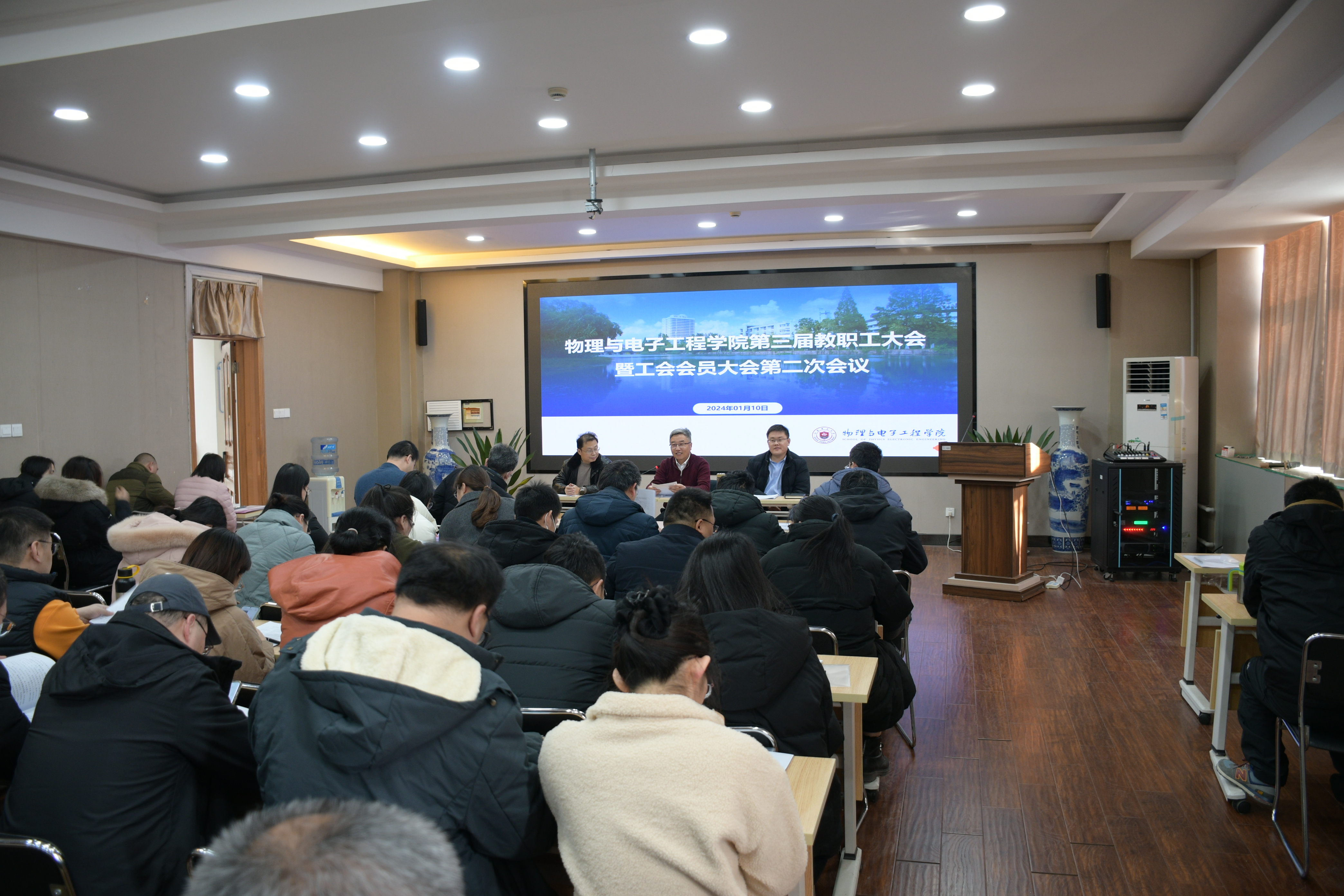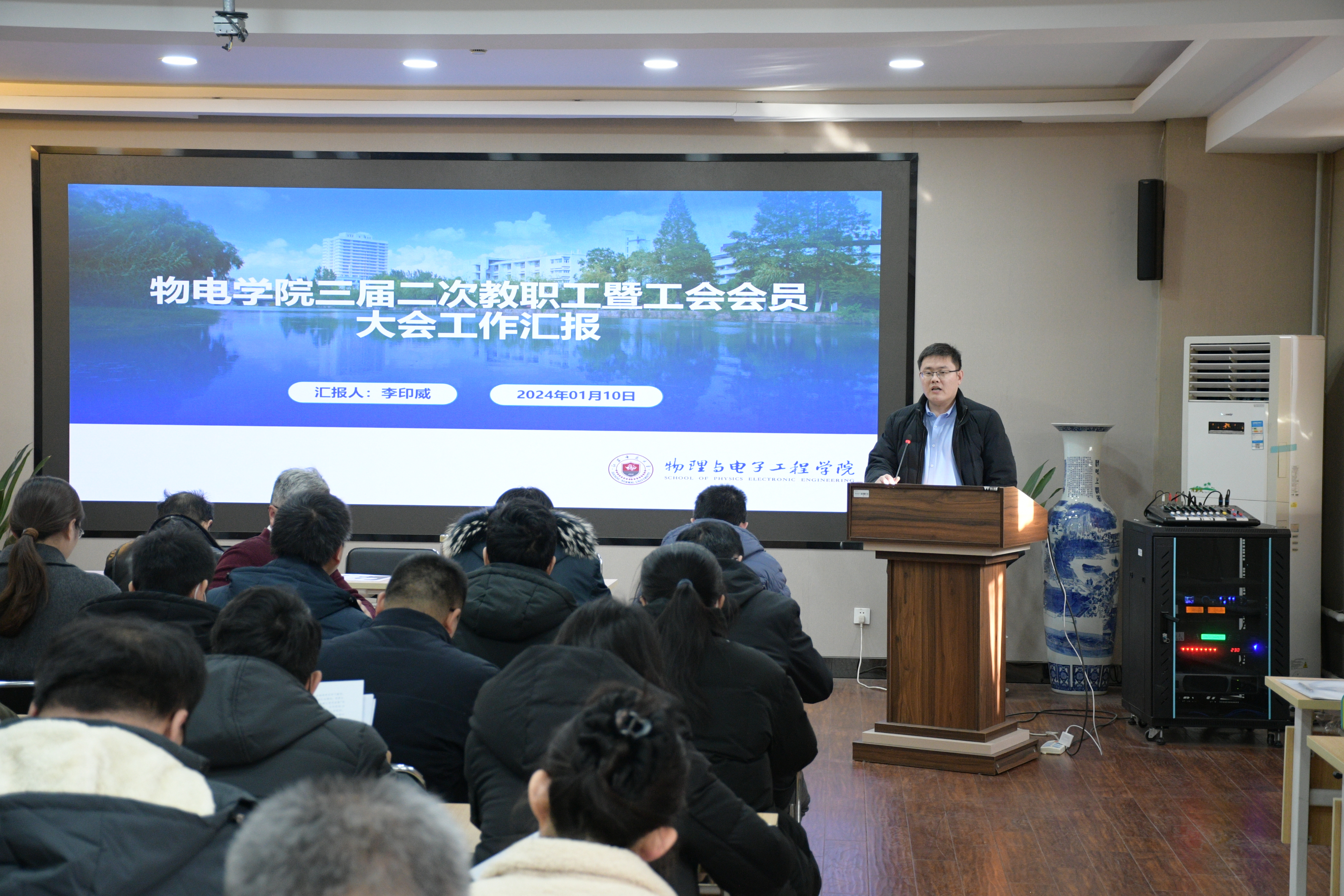 1月10日下午,物电学院三届二次教职工暨工会会员大会在学院327会议室隆重召开。学院全体教职工参加会议。会议由院党委副书记李冲主持。