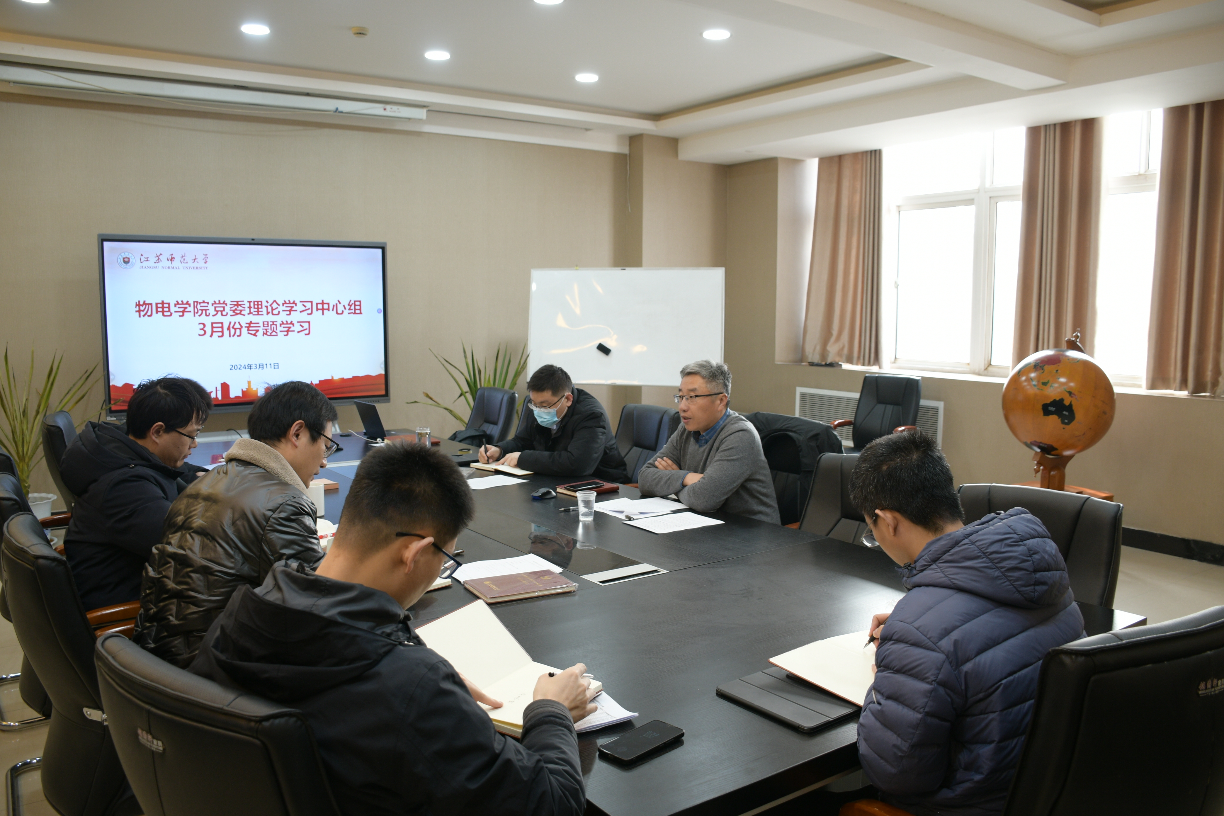 2024年3月11日上午,物电学院党委理论学习中心组在学院325会议室开展3月份专题学习,重点围绕《党史学习教育工作条例》进行学习研讨。物电学院党委理论学习中心组成员参加学习,本次学习由院党委书记王夫寿同志领学。