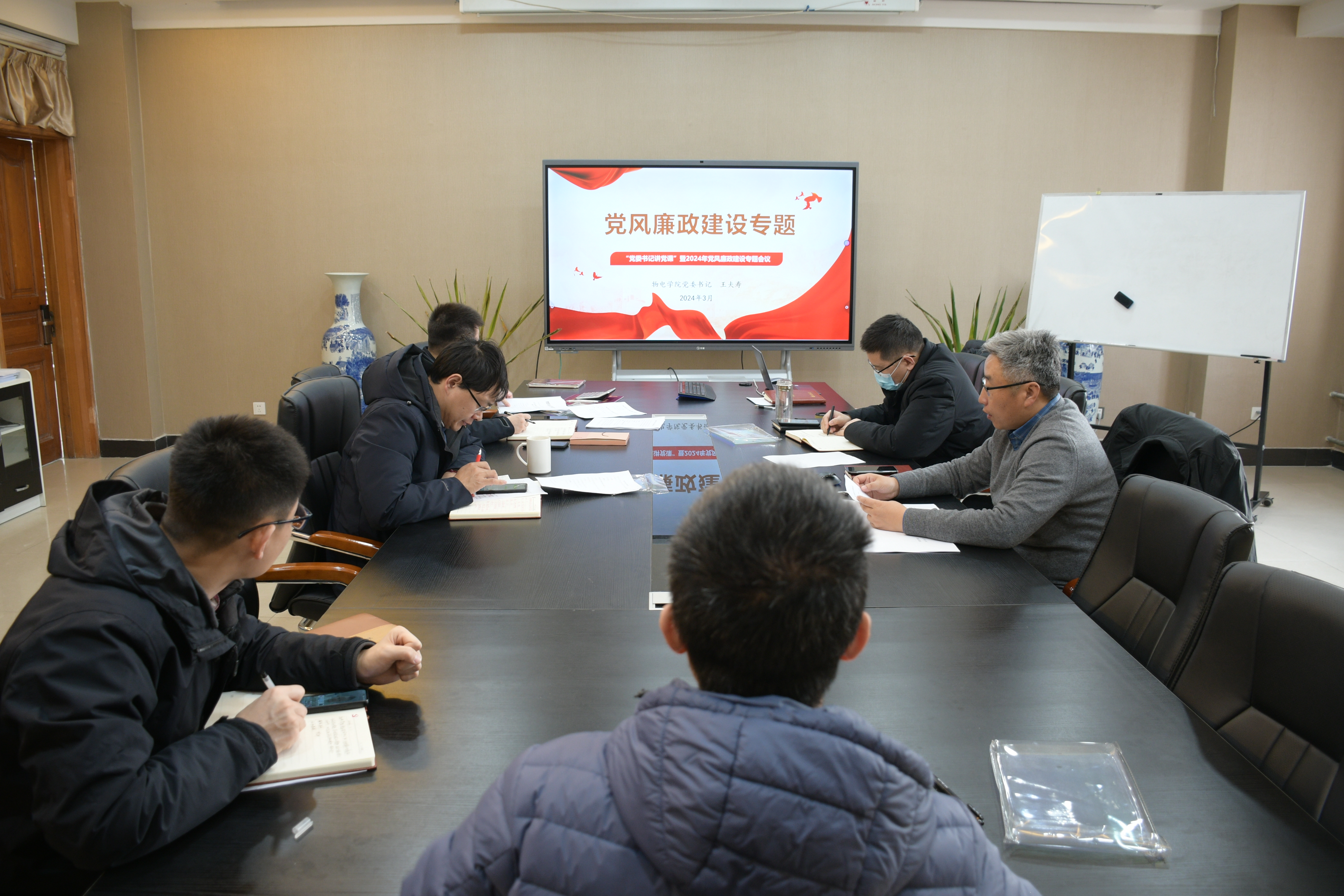 2024年3月11日上午,物电学院在325会议室召开“党委书记讲党课”暨2024年党风廉政建设专题会议,学院领导班子全体成员参加会议。