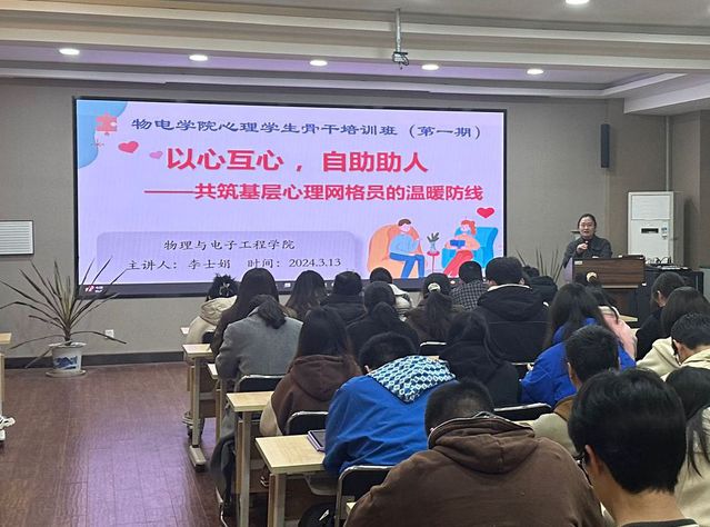 为进一步推进学院心理健康教育工作,系统化提升心理学生骨干的工作能力与素质,3月13日晚,物理与电子工程学院在7#327会议室成功开展了第一期“以心互心,自助助人——共筑基层心理网格员的温暖防线”心理学生骨干专题培训。本次培训会由学院心理辅导员李士娟主讲。
