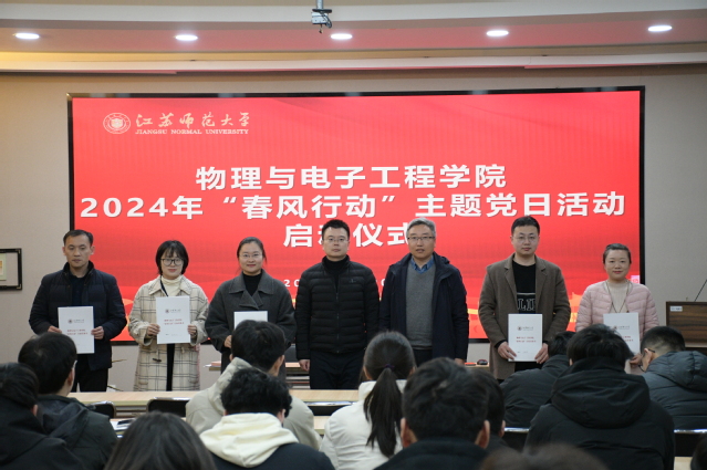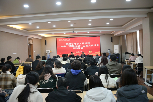 为贯彻落实立德树人根本任务,强化价值引领,突出育人导向,物电学院于3月20日下午举行2024年关爱学生“春风行动“主题党日活动启动仪式。院党委书记王夫寿出席仪式。仪式由院党委副书记赵明主持,学院各支部书记、全体专职辅导员、全体学生党员参加。