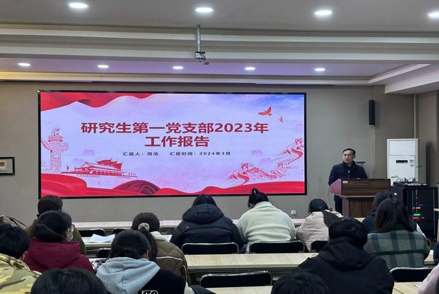 会上,周浩老师作了研究生第一党支部2023年度工作报告。他从理论学习、组织建设、主题教育、组织发展、党员管理、党建引领6个方面,对支部工作作了详细阐述。查找了在过去一年中支部工作存在的突出问题,提出在今后工作中,支部将牢记立德树人根本任务,注重党员示范引领,强化支部育人功能。紧密围绕研究生学业、就业、生活等实际问题,创新党建工作形式,促进党建工作和业务工作紧密融合。