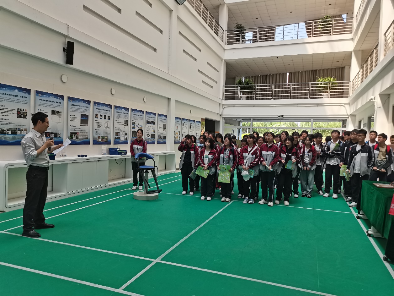 物理学是一门揭示自然奥秘的学科,它在科技强国中具有不可替代的作用。面对充满奥秘却又发人深省的物理实验面前,学生们常常会提出这样的问题:“龙卷风是如何形成的,风洞是如何工作的,乒乓球为什么可以一直悬浮在空中,人体真的可以发电吗”,在物电学院重点实验室的一楼大厅中,来自江苏省淮安中学的400名学生,兴高采烈地进行了学习与探讨,展现了求知若渴的激情。