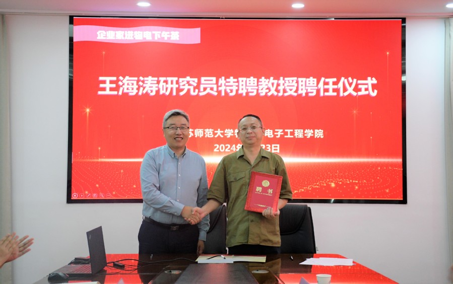 5月23日下午,在学院428会议室举行聘任仪式,聘请新戎和(北京)科技有限公司王海涛研究员为我院特聘教授。学院党委书记王夫寿等领导班子成员、系主任等教师代表出席了聘任仪式。聘任仪式由我院科研副院长张乐教授主持。