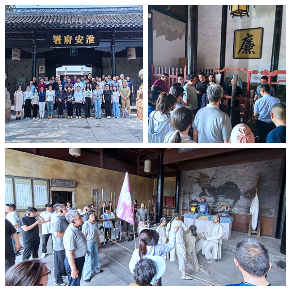 最后,全体党员来到江苏省级廉政文化示范点、党员教育示范基地——淮安府署进行参观学习,大家依次参观了正堂、仪门、清德堂等处,深入了解淮安府署的历史、古代制度、风俗等,参观了廉政主题的照壁、仪门、对联、刑具等文化遗存,通过实境学习教育,切身感受廉政文化,进一步增强拒腐防变的意识。在一座座威严壮观的古代建筑,一个个鲜活生动的历史故事中学习府署建筑本身寓意、楹联释义和爱民如子的古代清官故事,深刻体会古代官员廉洁自律、执政为民的理念和“厚德”“仁爱”的爱民情怀与公仆意识。