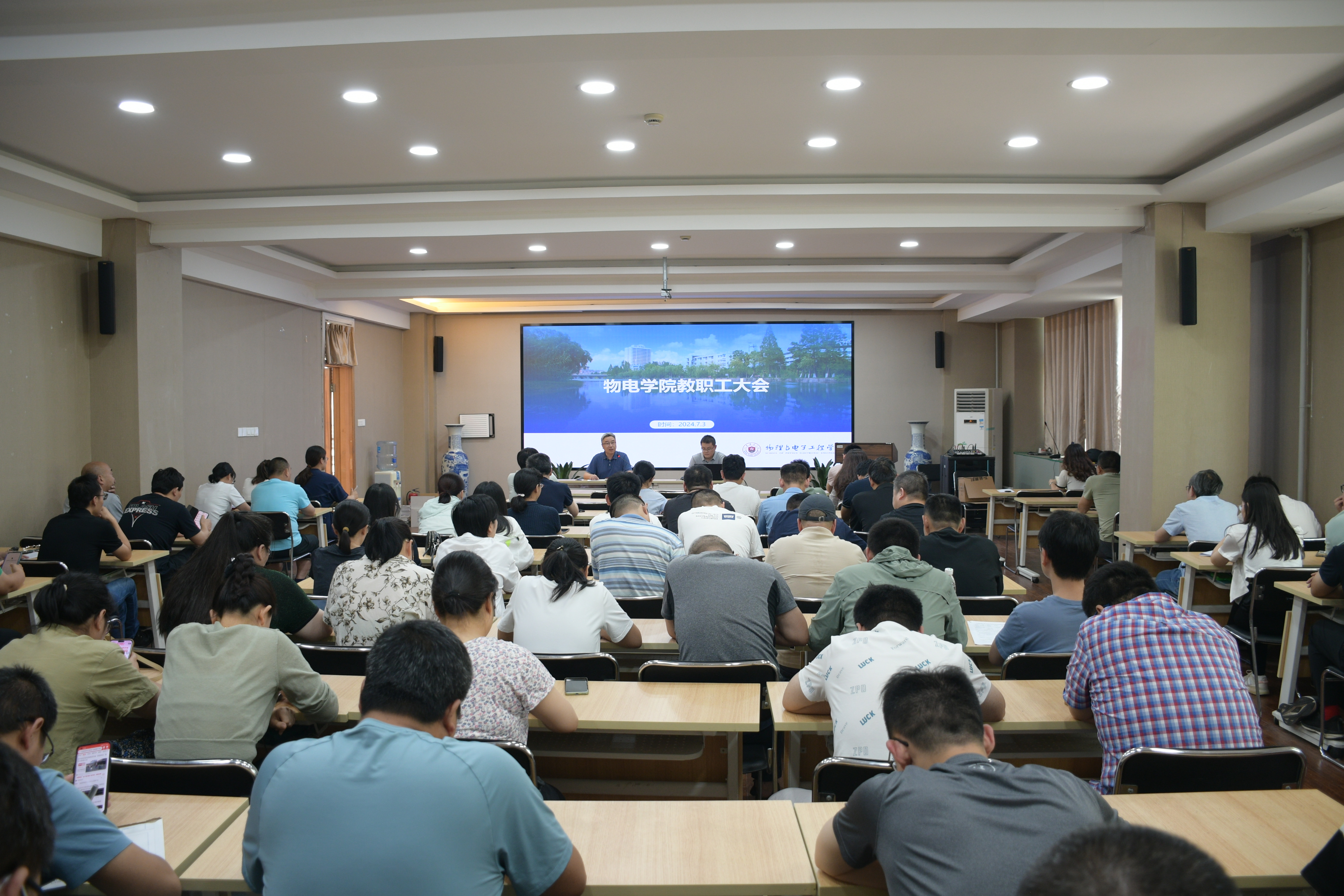 7月3日下午,物电学院召开全体教职工大会,学院全体教职工参加,会议由院党委书记王夫寿主持。