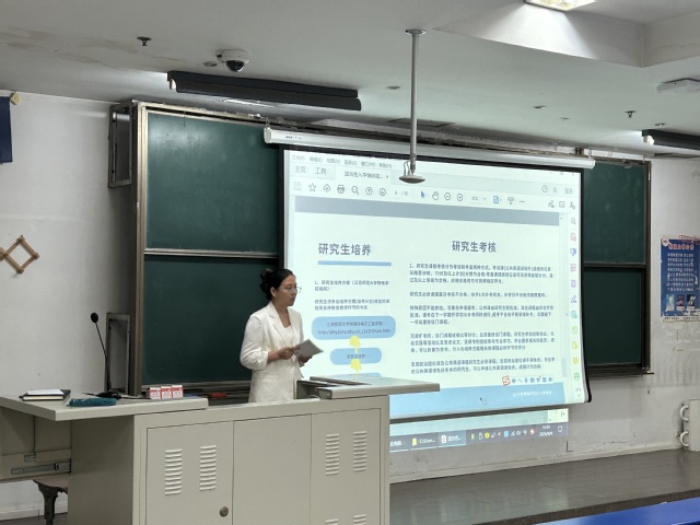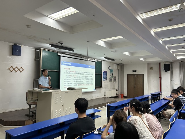 随后,研究生秘书涂立君围绕研究生学籍注册、选课、考核、培养等具体问题作了详细讲解。提醒大家要认真研读培养方案,明确自己的学业发展规划。重点对近期信息核对、选课等方面作了介绍和工作安排。辅导员周浩介绍了研究生办公室工作分工,对研究生评奖评优、助学金、三助一辅等政策进行了说明,通过领学研究生手册以及讲述案例的形式,开展日常管理、校园安全、职业规划等方面教育。希望大家要增强规矩意识,守住安全底线;转变学习理念,探索学习方法;积极向导师汇报,助力个人成长;学会尊重与沟通,建立和谐人际关系。