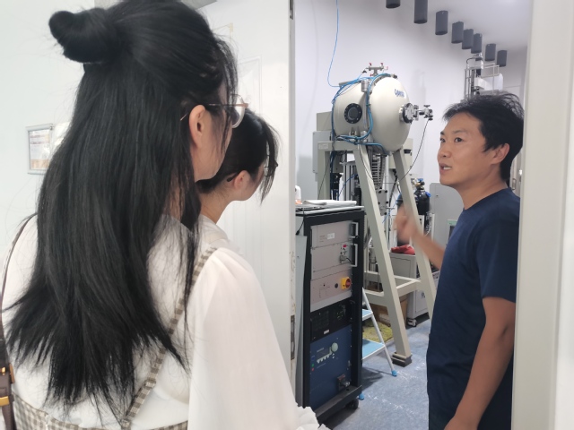 随后,马杰老师带领大家参观了各个实验室并作介绍。同学们认真观察展出的材料和器件,表现出了极大的兴趣并积极提问,马老师耐心给同学们答疑解惑。参观过程中,马老师特别强调了实验室安全问题,要求同学们要增强安全意识,严守操作规程,对相关实验器材不允许近距离观察,只能远程操作,确保安全第一。