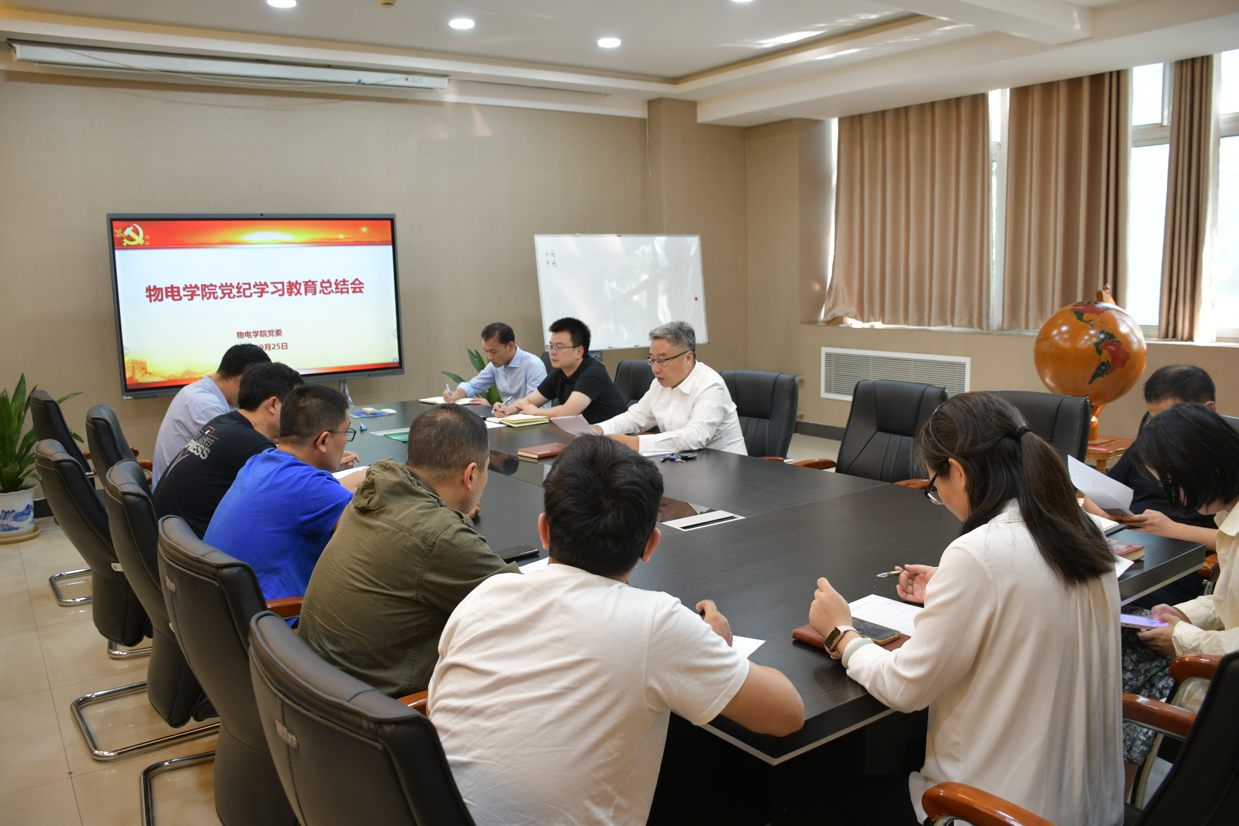 9月25日下午,物电学院召开党纪学习教育总结会,对学院党纪学习教育进行总结,并就巩固拓展党纪学习教育成果、推动党的纪律教育常态化长效化工作进行安排部署。学院各党支部书记、工会主席、妇委会主任、团委书记参加会议。会议由院党委书记王夫寿主持。