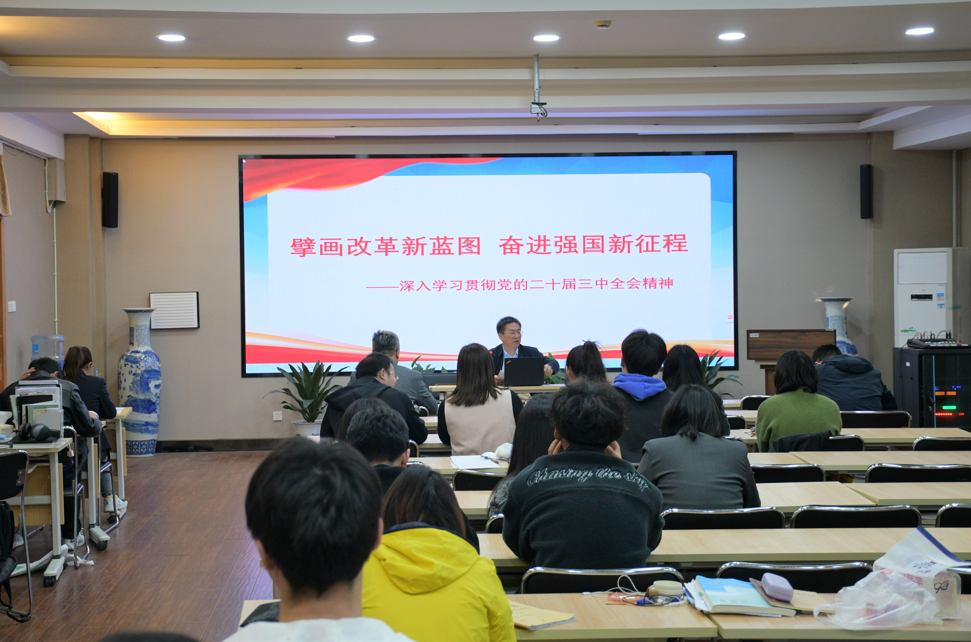 为进一步学习宣传贯彻习近平新时代中国特色社会主义思想,深入学习党的二十届三中全会精神,10月23日下午,校机关党委书记兼党委组织部副部长王丰为物电师生作了题为《擘画改革新蓝图 奋进强国新征程》的专题宣讲。本次宣讲会由院党委书记王夫寿主持。