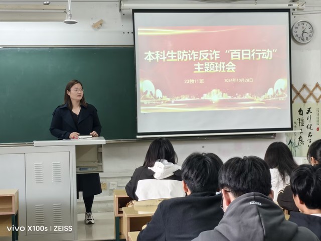 为进一步提升学生的防诈反诈意识,保护生命财产安全,10月20日-30日,物电学院以班级为单位,召开防诈反诈“百日行动”专题班会,本科生覆盖率100%。