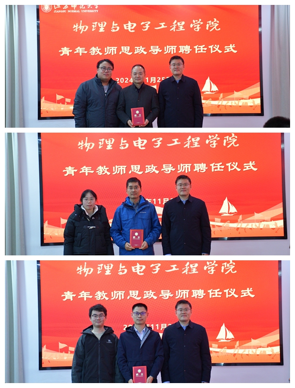 11月25日下午,物电学院举办“思政同心圆工程”之“青年教师思政导师”聘任仪式。校学科办闫长春主任应邀出席仪式,学院领导班子、思政导师和青年教师代表参加活动。聘任仪式由院党委赵明副书记主持。