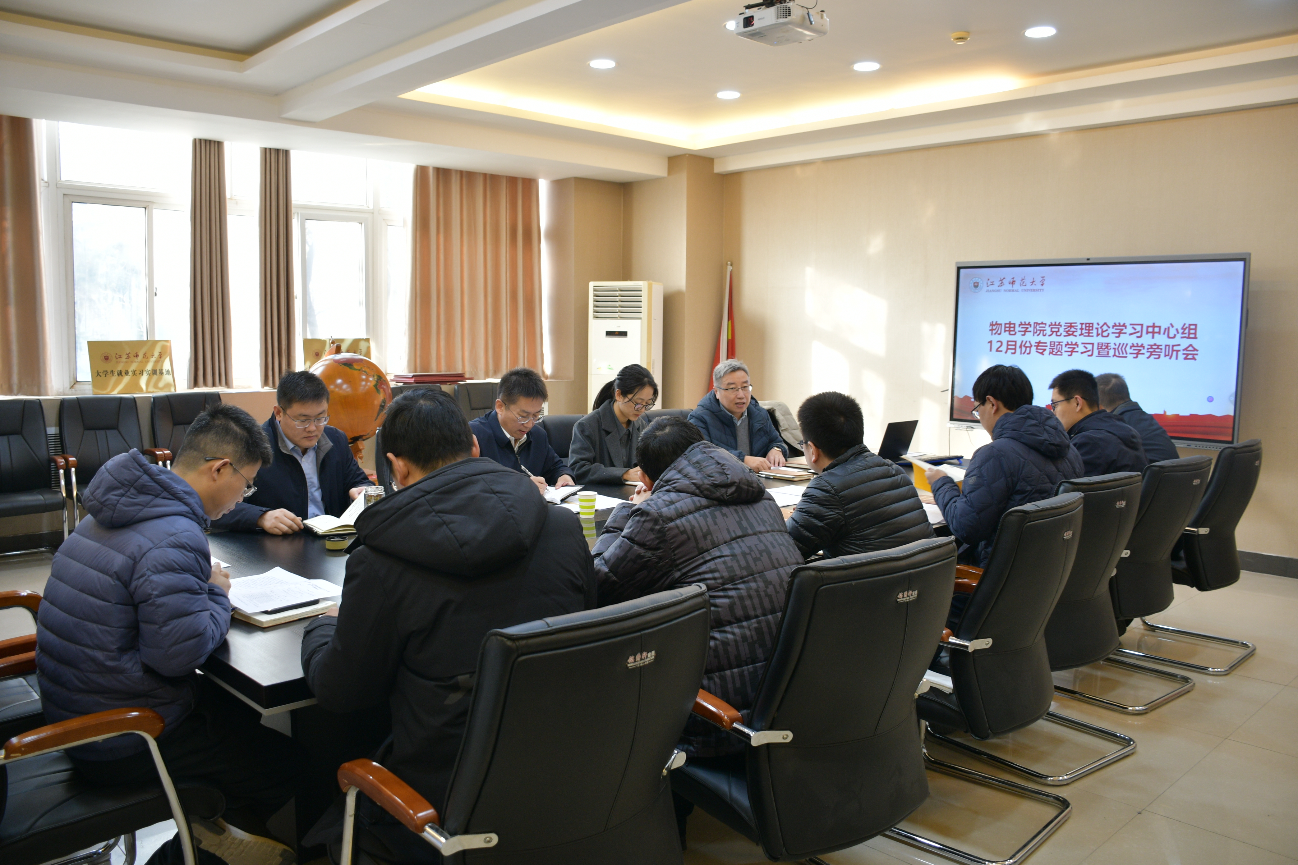 12月9日上午,物电学院党委理论学习中心组在学院325会议室开展12月份专题学习暨巡学旁听会,校党委巡学旁听组成员、校机关党委书记兼党委组织部副部长王丰,校纪委办公室宁瑞雪来院开展巡学旁听并给予指导。物电学院党委理论学习中心组成员参与学习。本次学习由院党委副书记赵明领学。